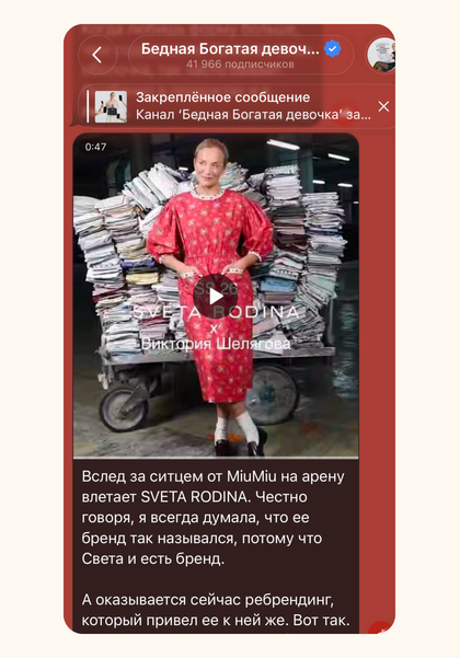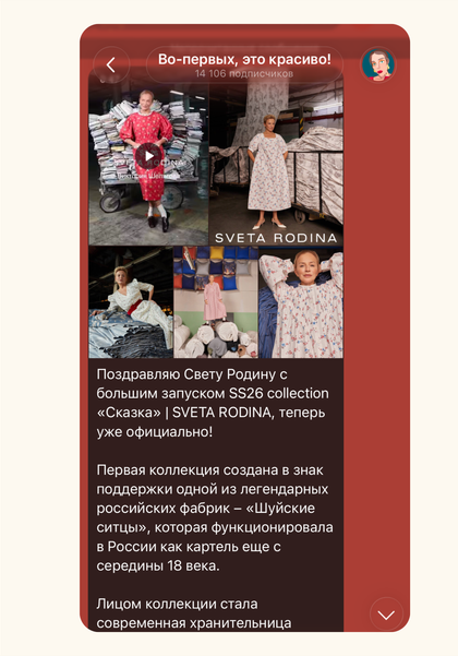 Дизайнер бренда Светлана Родина мастерски обыгрывает тему художественного патриотизма и собственную фамилию — в цветочных принтах, «ситцевых» платьях и стеганом...