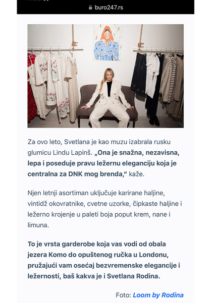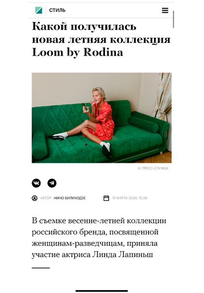 Вся съемка выполнена на плёнку и спродюсирована художником и дизайнером бренда Светланой Родиной. Российский бренд Loom by Rodina опубликовал атмосферную...