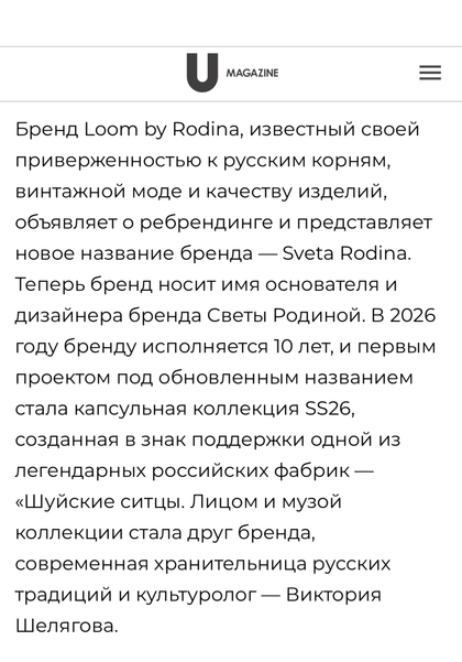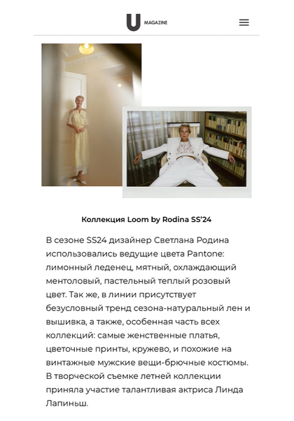 Создательница марки Loom by Rodina Светлана Родина в этом сезоне решила все делать сама. Она выступила не только в качестве...