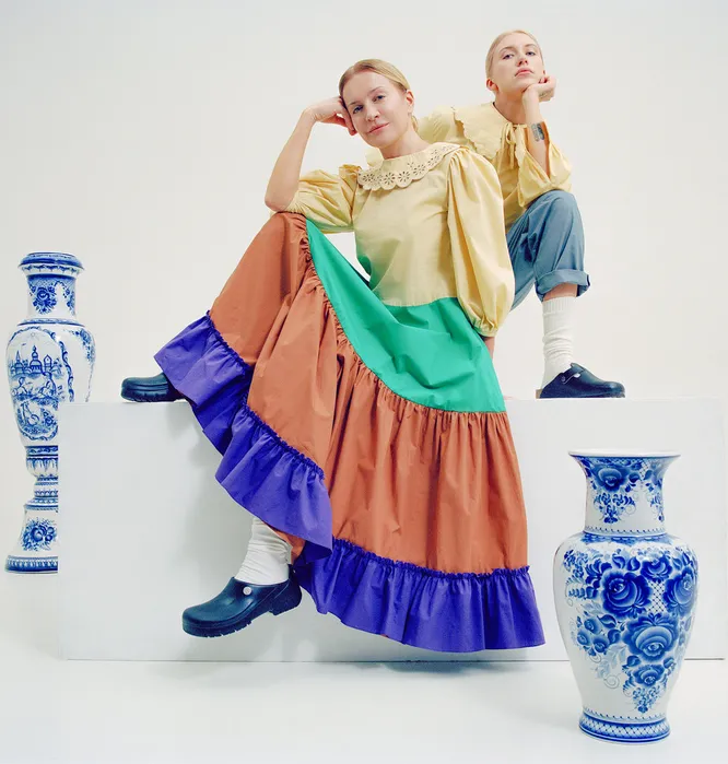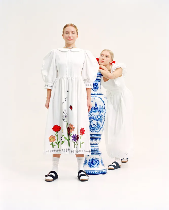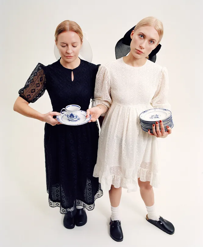 В лукбуке коллекции снялись Виктория Шелягова с дочерью Варварой, известные своей любовью к русской культуре и народным промыслам.