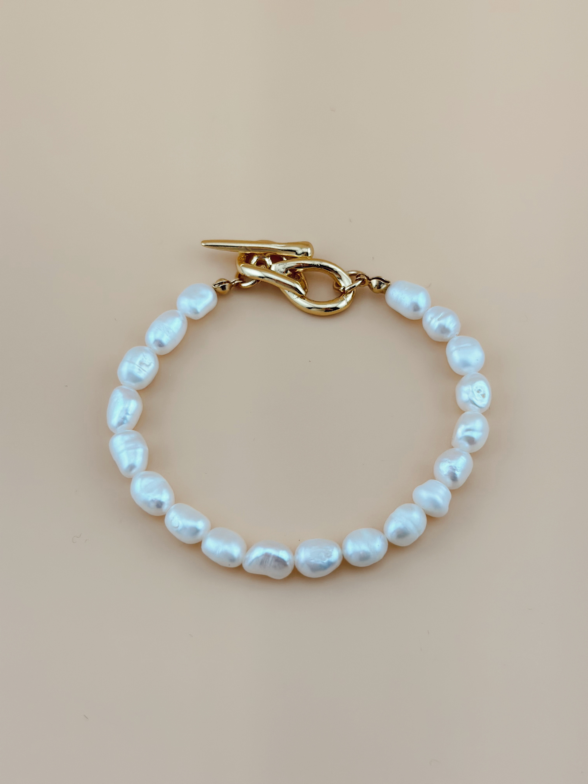 Браслет из жемчуга — крупный «рис» с застежкой на большой гвоздь