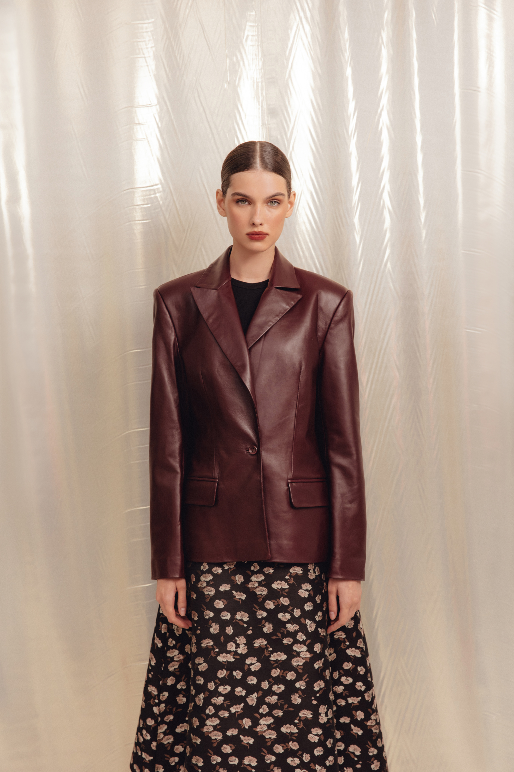 Однобортный жакет прилегающего силуэта – классика и мастхэв повседневного гардероба, который можно вписать и в деловые, и в расслабленные образы. Выполнен из нежной и практически невесомой премиальной кожи.